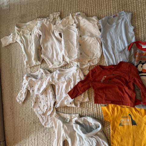 Klespakke med 6 plagg, str 62/3 måneder. Noe ubrukt.