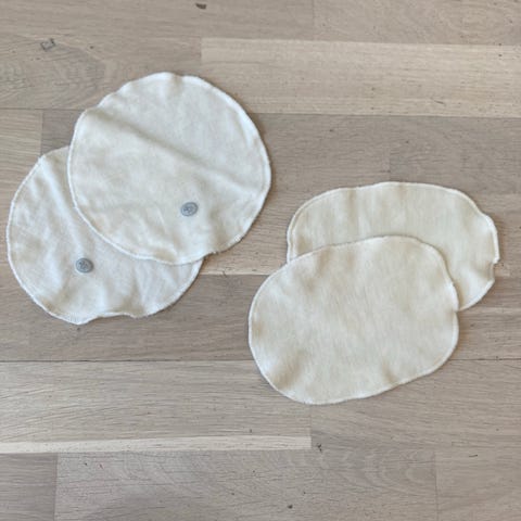 Grått sett er fra Joha, str M. De lyse er jeg usikker på merke, men sannsynligvis str L ettersom de er mye større. Selges samlet for 100kr. Kan sendes mot porto.