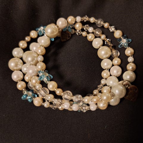 Armbånd med gråhvite glassperler kan reguleres fra ca. 18-24 cm.
