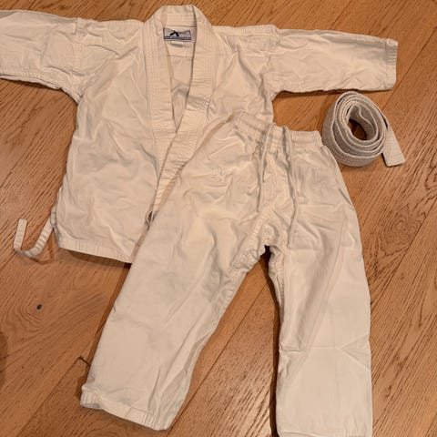Selger en karatedrakt med flere belter som ser nesten ubrukt ut til en rimelig pris,