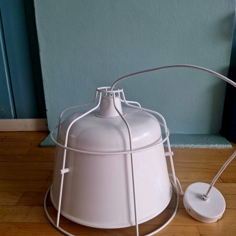 Selger en nydelig taklampe fra Bolia med hvit lampeskjerm. Pent brukt og ingen merker. Selges grunnet flytting.