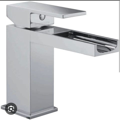 Følger med plastikk hylle ovenpå kranen for å plassere f.eks tannkrem, såpe osv på.