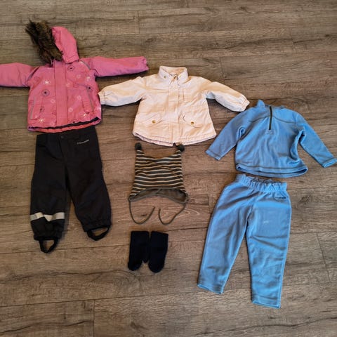 Selger en tynn vinterjakke/overgangsjakke, skalljakke og skallbukse. Selger masse annet klær og utstyr til barn. Hentes Dalgård / Stavset. Eller sendes på kjøpers regning.