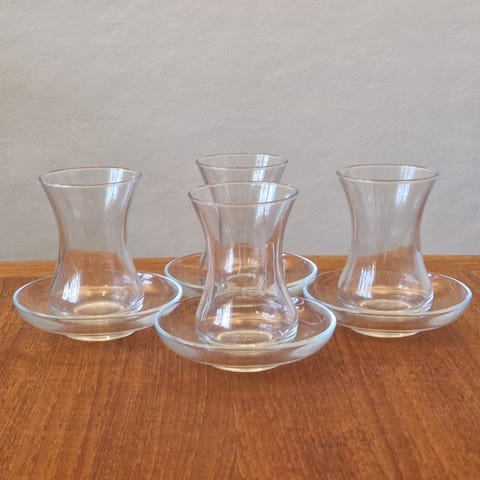 3 glass, og fire fat fra Tyrkia. Tyrkiske glass til te og kaffe