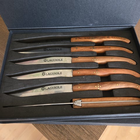 Laguiole Heritage TB Since 1648 kokkekniver. 5 stk. Tror det er oliventre.