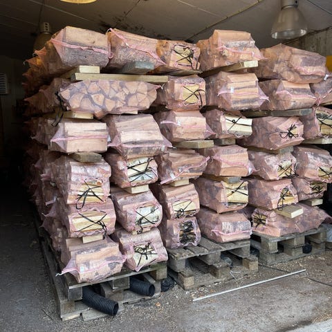 Tørr bjørkeved i 40 liters sekk.