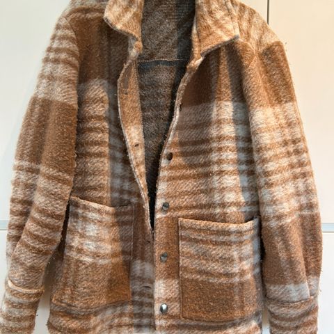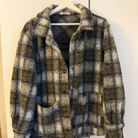 Selger denne fine Topshop jakken med ruter, str. M. Hvit silkestoff innvendig. Lite brukt, så i god stand.