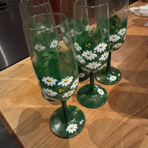 Håndmalte vinglass i vannfarget krystall. Hele og pene, uten riper eller skader. Det 7 glass.
