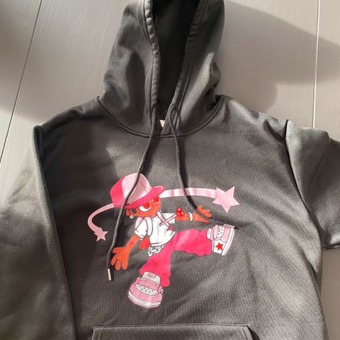 Lite brukt Tøff grå blå hettegenser fra Go Tokyo Brand i blandet stoff 63% bomull, 37% polyester. Broderte logo foran og på ermen. Magelomme. Lengde ca 60 cm