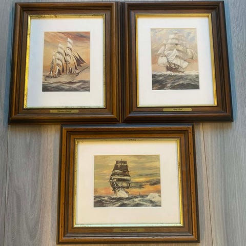 Seilskute-bilde av en fullrigger, str: 82cm x 57cm. Det er ikke et oljemaleri, men et fotografi som har vært i familien siden ca. 1915.