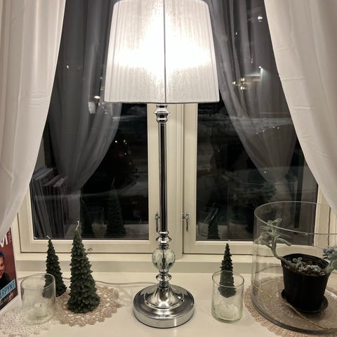 Lampeskjerm har noen bruks merker eller foten har ingen bruksmerker.