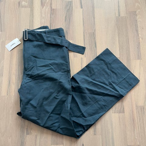 Blå penbukse fra VILA i str 40 selges. Aldri brukt. Den har hengt i skapet og blitt rynkete, derfor den er rynkete på bildene. Sendes i posten mot at kjøper betaler for frakt. Kan møtes ved avtale i Lillestrøm.