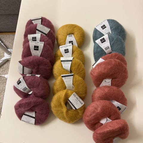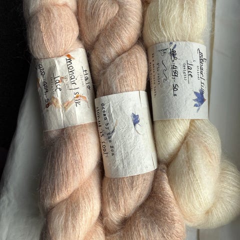 6 nøster mohair blend garn 80% kid mohair 20%nylon.