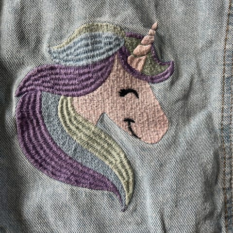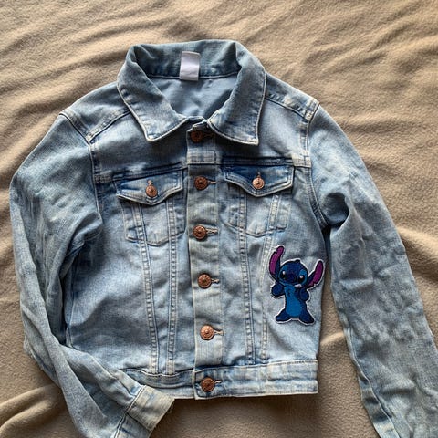 Nydelige jakke som fikk dattera min :) bildet er håndmalt med klesmaling, det kan vaskes på lave temperaturer. Dattera min er snart 5 år gammel og det er så liten til henne