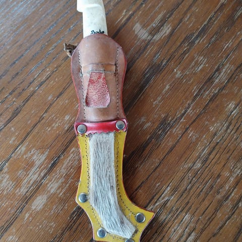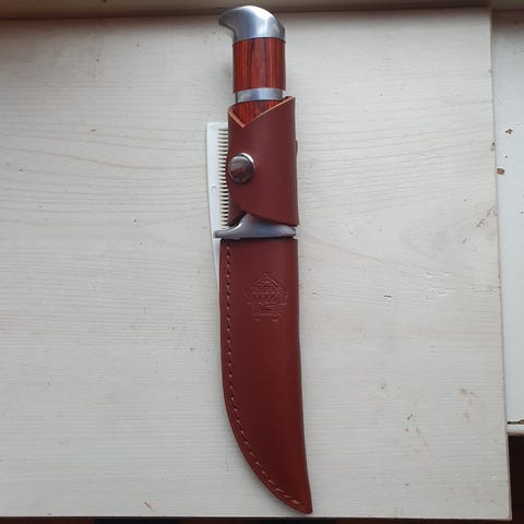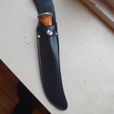 Eldre same sowernikniv i fin stand selges. Dette er en fin kniv og ha i samlingen. Signert Røros øverst på sliren. Lengde med slire 23 cm,uten slire 21 cm. Bladlengde 12 cm. Pris 700 pluss 70 kroner i porto med sporing eller kan hentes i Oslo.
