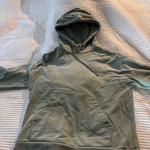 Brukt et par ganger, ingen synlige bruksmerker. Har split i siden, med vide armer. Noe oversized i str. 100% bomull.
