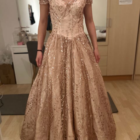 Ballkjole som dessverre aldri rakk å komme i bruk på grunn av avlysning under koronaen, og er dermed kun prøvd på
