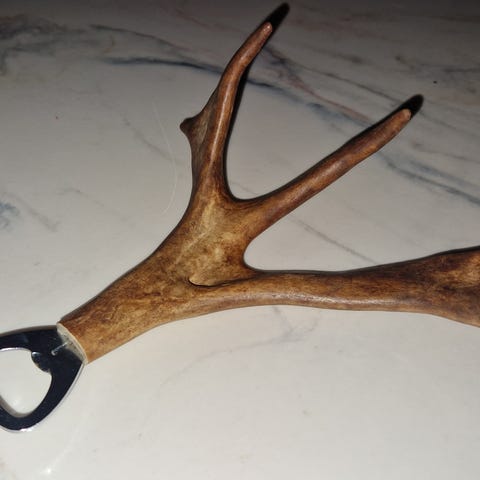 Eldre vintage skjenketut/helletut i reinsdyr horn, metall og kork , god stand, se bilder, gjenstanden kan også være antikk.