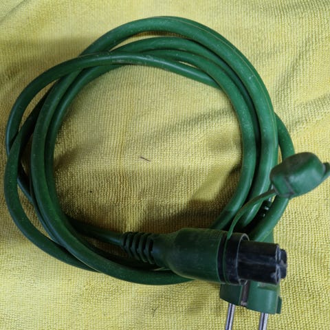 Motorvarmer med tilbehør. Den svarte kabelen som sitter mellom varmeelement og den grønne kabelen mangler. (Kan kjøpes mange steder)