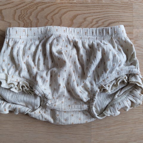 Nydelig bloomer/shorts med perlemorsknapper. Ingen anmerkninger, brukt minimalt. Eventuelle mørke felt på bildene er kun skygger.