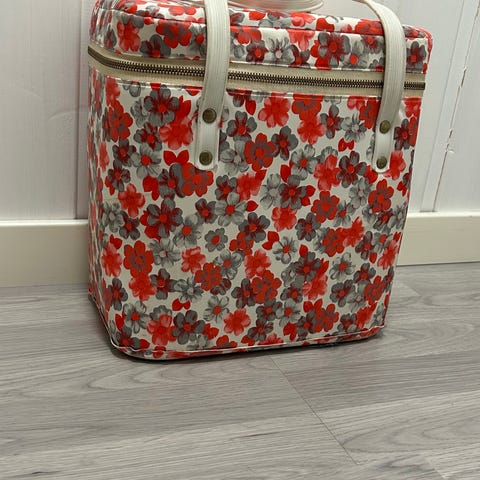 Søt og praktisk, man får plass til mye oppi denne, både bestikk, fat og mat. Den kan også ha kjøleelementer for å kjøle ned mat og lignende