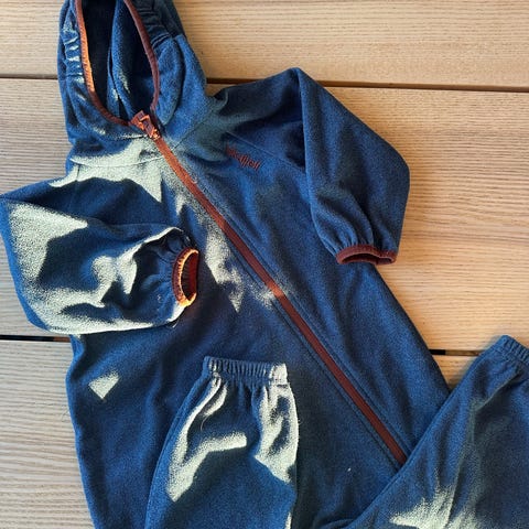 Fleecedress med praktisk glidelås. Str 92.. kosedress inne på kalde dager eller under regntøy eller utedress til kalde dager.