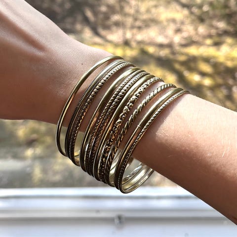 Flott armbånd i gullfarge med blanke stener