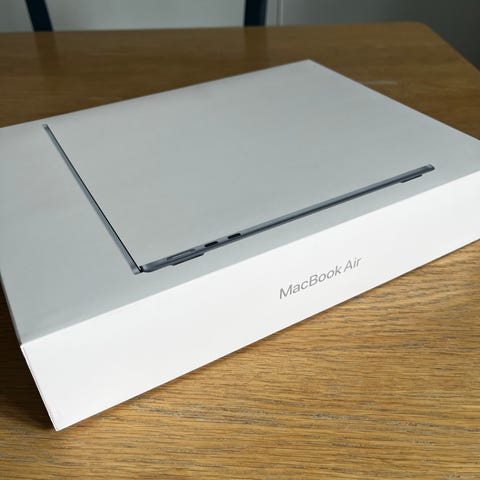 Uåpnet stativ til MacBook / bærbar PC i farge sølv.