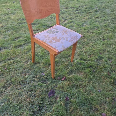 Et flott gammelt bjørkemøblement bestående av 4 stk hovedstoler, 1 stk sofa, 1 stk bord med nedfellbare lemmer og 2 stk vanlige stoler. Bilde av sofa mangler da den ikke er i bruk. Møblene er laget i nydelig bjørketre. Treverket er tidligere pusset opp og har siden stort sett stått til pynt. Dette er skjelden vare.