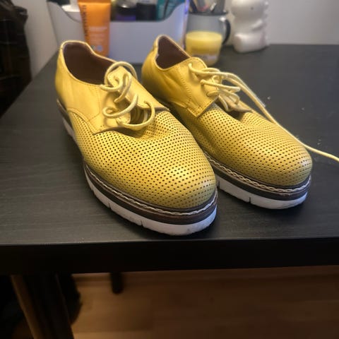 Ubetydelig brukt Bianco skinnsko i en fin gul farge, str. 37, selges kr. 250,-💛Ny pris 999,-