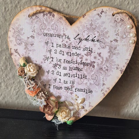 2 Nydelig hjerte med motiv - dekorasjon - bord - bad - soverom - Selges rimelig