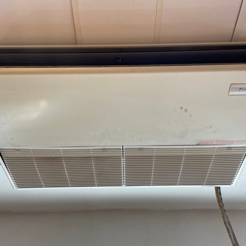 Utedelen veier ca 100 kg, viften monteres i taket og blåser i fire retninger samtidig.