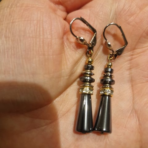 Svært pent halskjede i svart sten og krystaller.