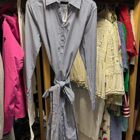 Pent brukt skjorte i maritim stil fra Ralph Lauren i str S med rysjer og striper.