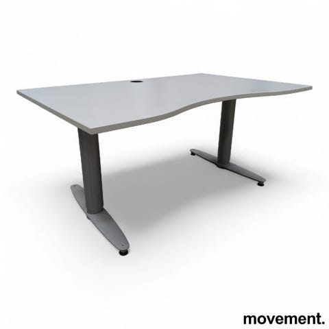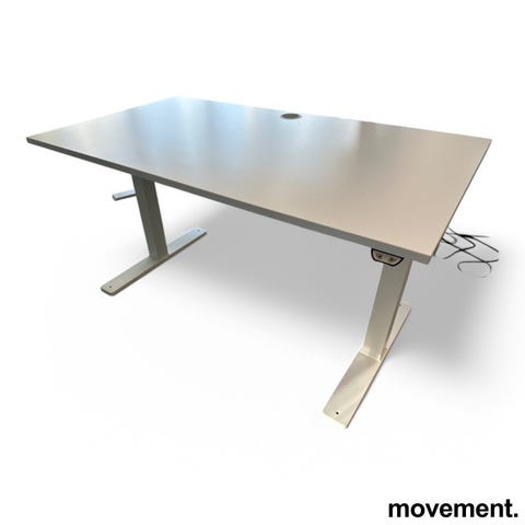 Skrivebord med elektrisk hevsenk fra Kinnarps i bjerk, med magebue, 160x80cm, T-