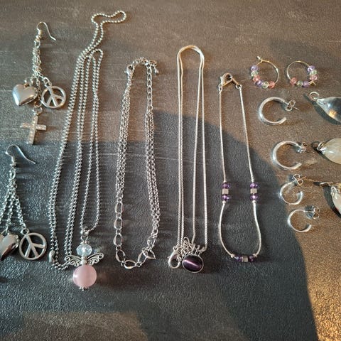 Nydelig smykkesett med halskjede og clip on øredobber