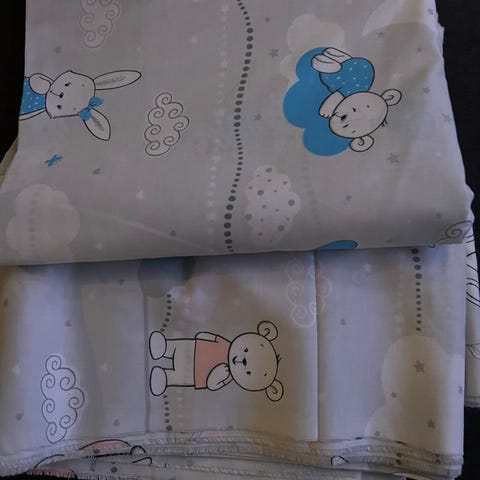 Samlet pris for stjernestoff, stoff med dyr og retro putetrekk er 300 kr.
