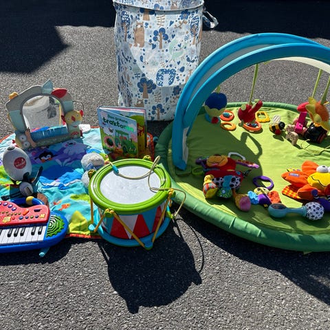 Bamser pr stk 50kr barnegym 300kr gungehest 750kr pose med leker 1500kr sparkesykkel 300kr