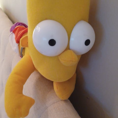 En stk Bart Simpson jumbo plush på ca 1m vurderes solgt. denne er i meget fin tilstand og er et meget sjeldent og kjekt samlerobjekt for alle som elsker The Simpsons