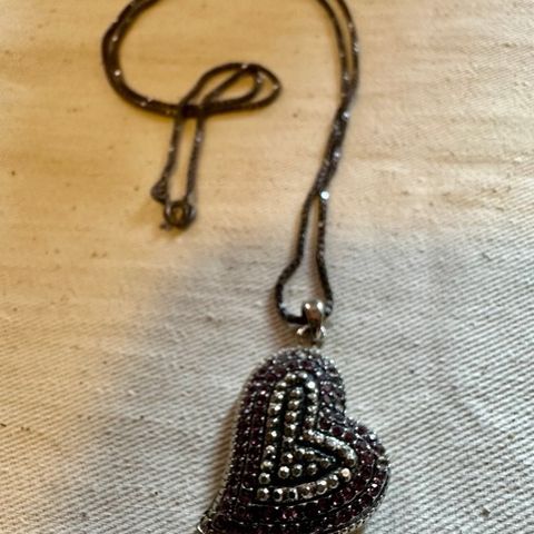 Blått hjerte med grovt kjede.