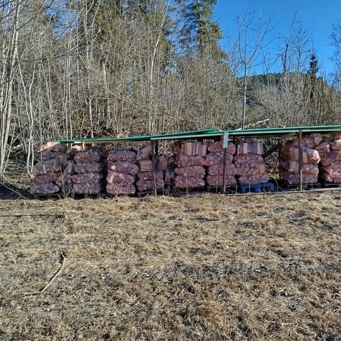 Tørr ved selges Blandingsved 2 årsnedtorkings tid (hassel lønn svart or + innblanding av noe andre) i 40 liters sekker 72 kr pr sekk . det følger med en pappeske opptenningsved . Ved kjøp av minimum 10 sekker ved