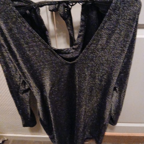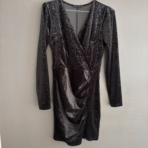 Veldig fin kjole som kun er prøvd på. Glitter/shimmer svart. Er glidelås på siden
