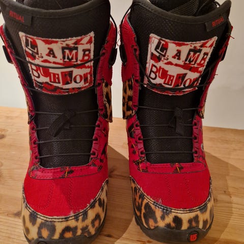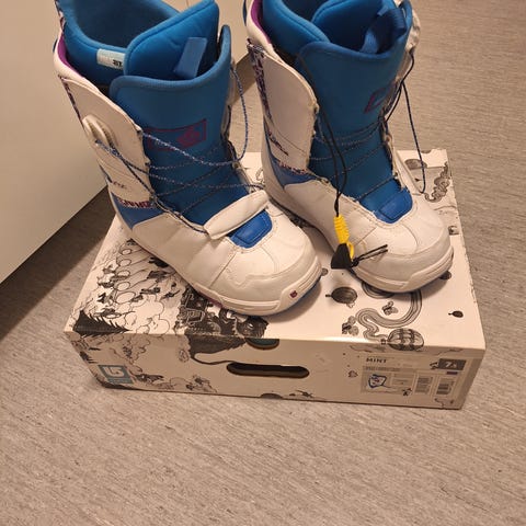 Selger mine snowboard boats fra Burton. De er dessverre for små til meg, kun brukt noen få ganger og er som nye.