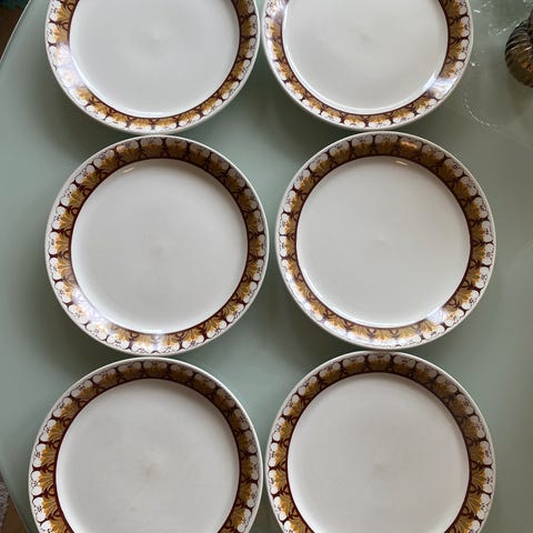 ❤️ Tallerkenene har forventet normal bruksslitasje på bruksflaten, ingen nagg. En tallerken har krakkeleringer. Se bilder.