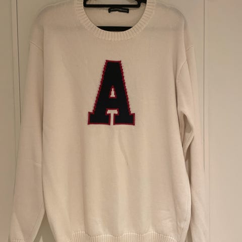 Stripene bomullsgenser fra Brandy Melville selges. Farge: marineblå/ mørk blå og hvit/ offwhite. Behagelig kvalitet. Inneholder 100% bomull, og er produsert i Italia.