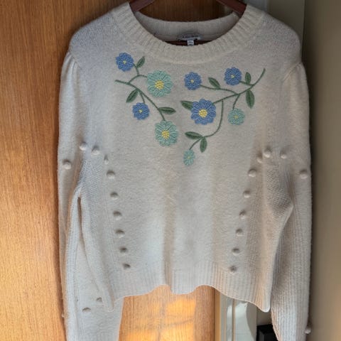 Ladies cream cotton sweater with flowers. medium. Great condition. Beautiful.