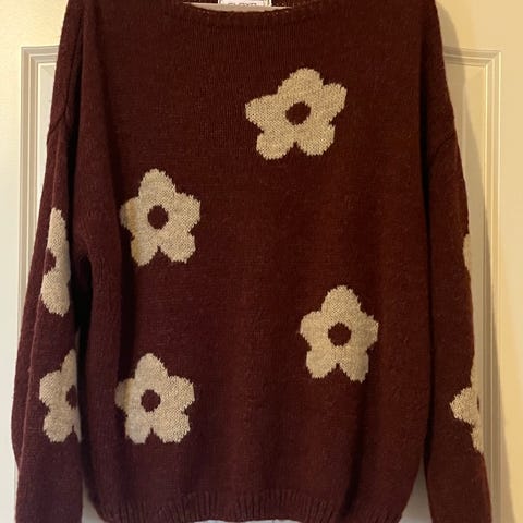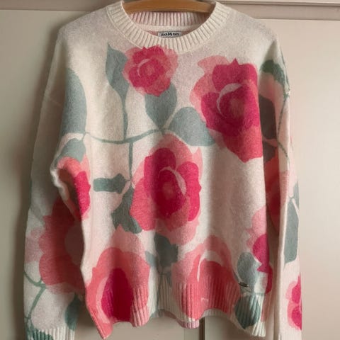 Dame krem bomullsgenser med blomster. medium. God stand. Vakker.