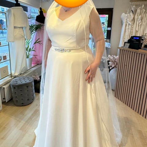 Selger en enkel og nydelig brudekjole selges. Kjolen er pent brukt en gang.