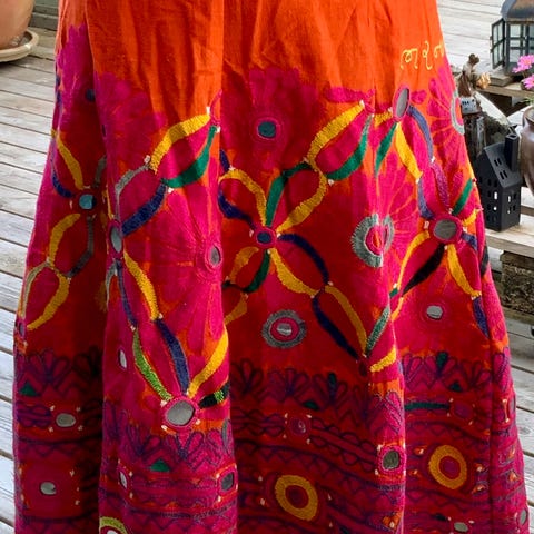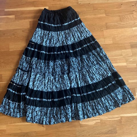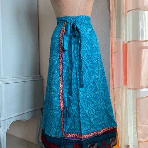 Nydelig silkeskjørt som vil passe alt fra S til L eller XL. Noen løse tråder kan forekomme. Kan brukes på begge sider🌞