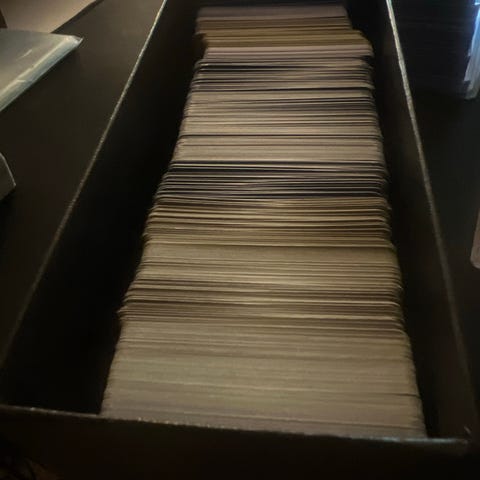 Ca 500 kort i hver box- 750 nok